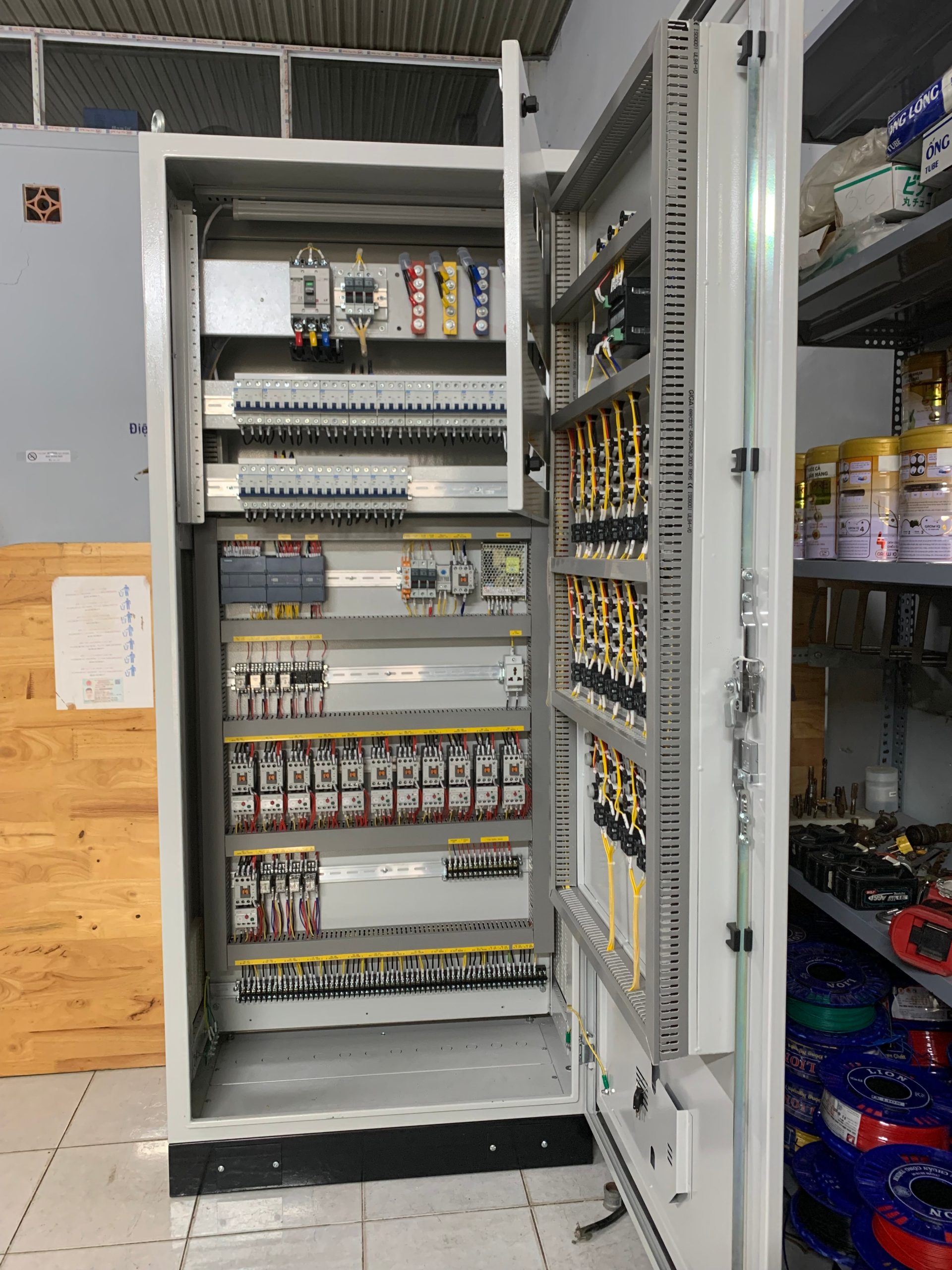 Thiết kế gọn gàng, dễ bảo trì: Hệ thống dây dẫn, thiết bị được bố trí rõ ràng, có nhãn dán phân biệt.