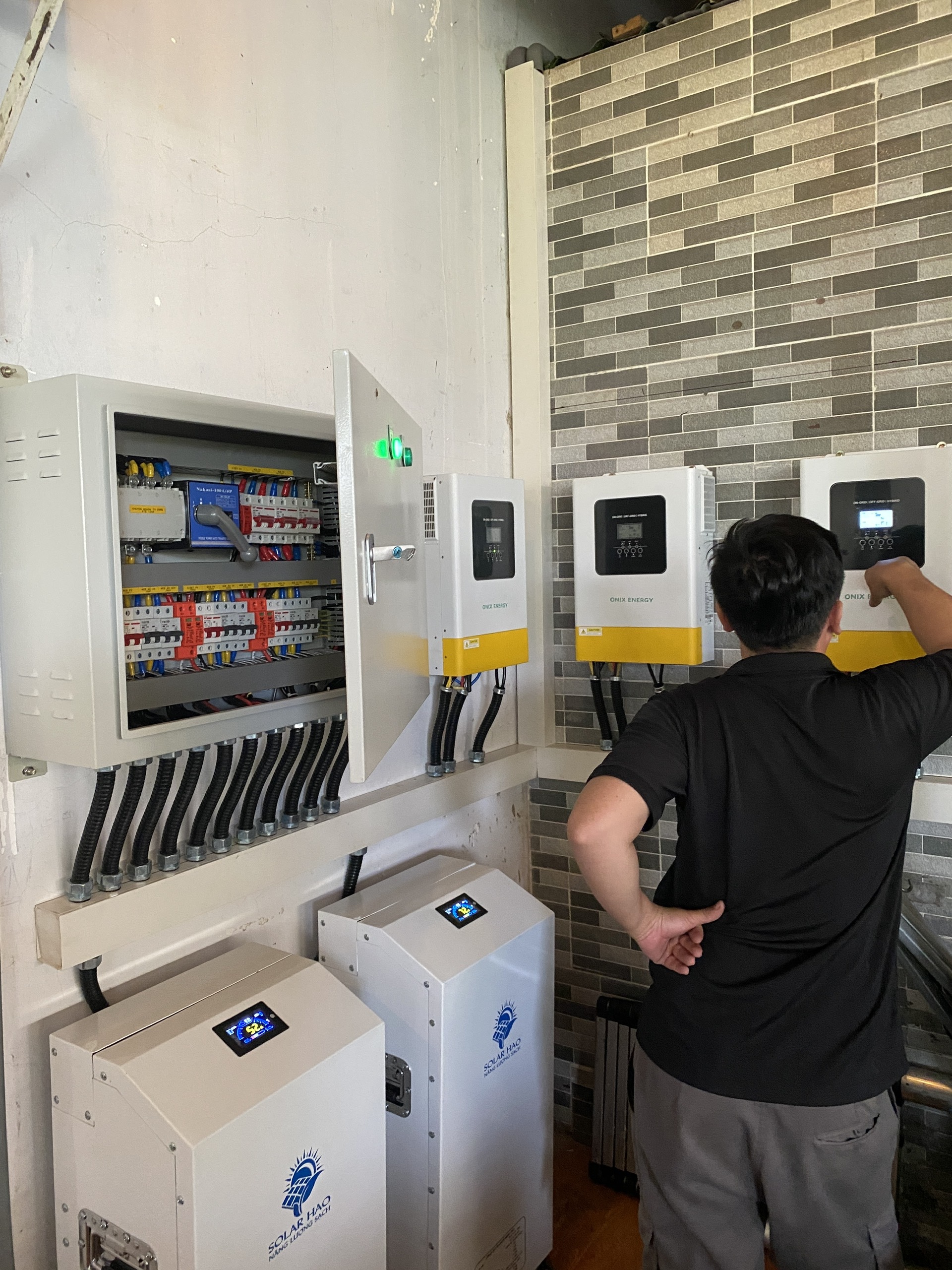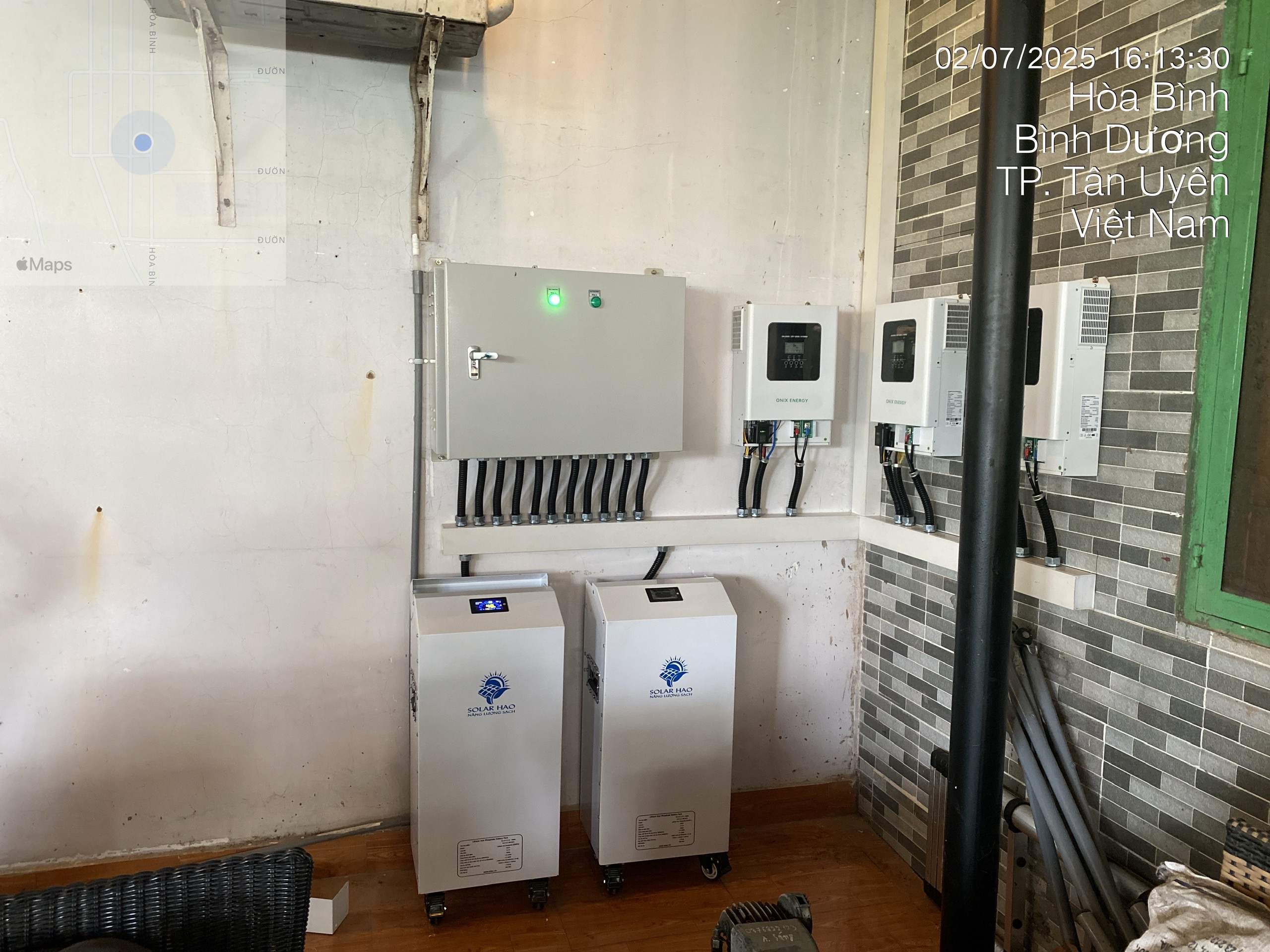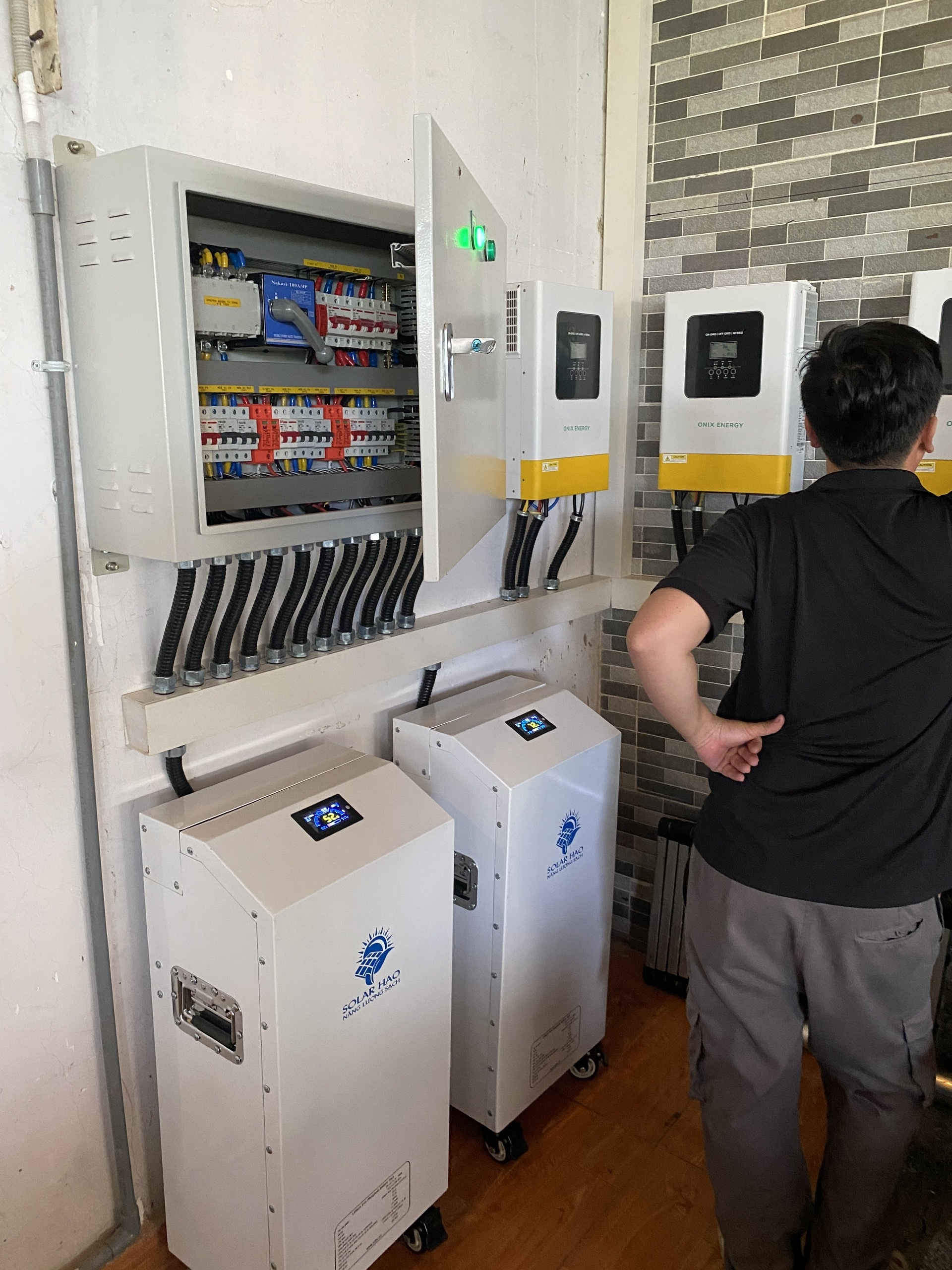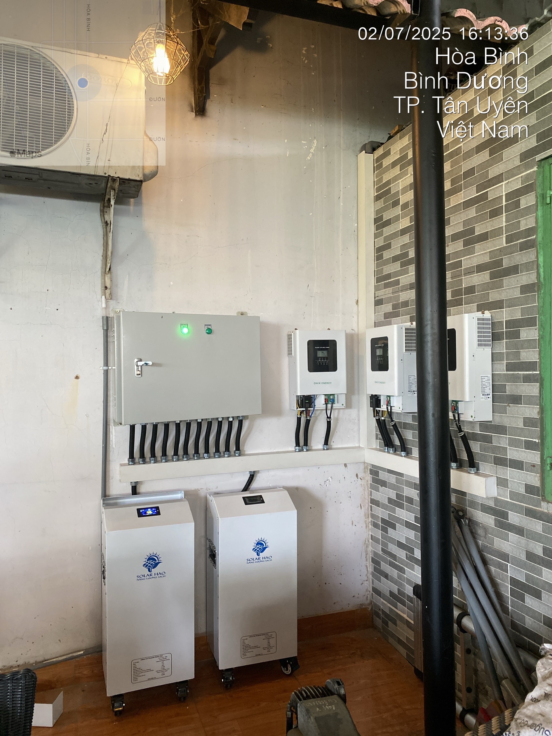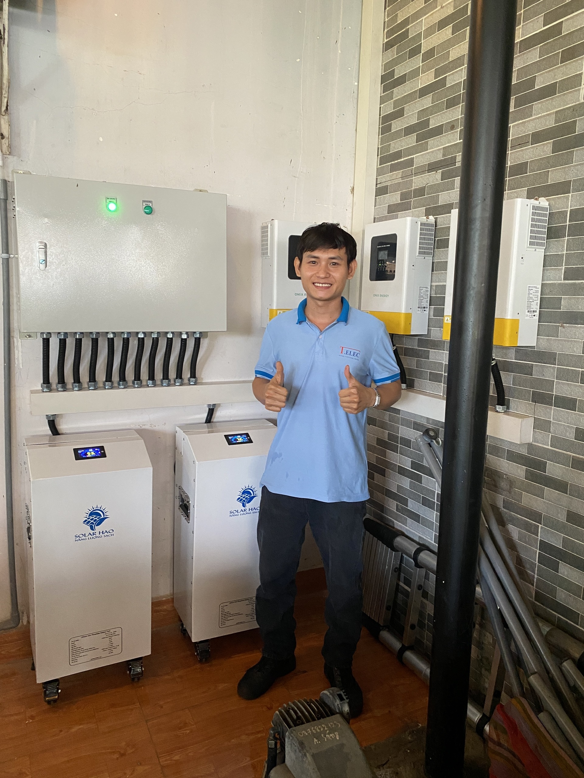 Hệ thống ắc quy lưu trữ của SOLAR HAO: giúp lưu trữ năng lượng để sử dụng vào ban đêm hoặc khi mất điện lưới.